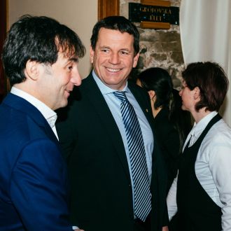predsednik SKZ Janez Škrabec ob podpori Sare Stepanjan, Aswina Kumarja